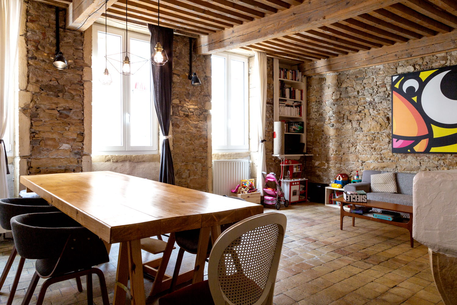 Présentant l'ensemble des prestations caractéristiques de l'architecture traditionnelle lyonnaise (tomettes, plafonds à la française, pierres dorées), il articule ses différents espaces nuit et jour de manière équilibrée et sans perte de place. Un bien idéal pour l'aménagement d'un lieu de vie cosy et cocooning.