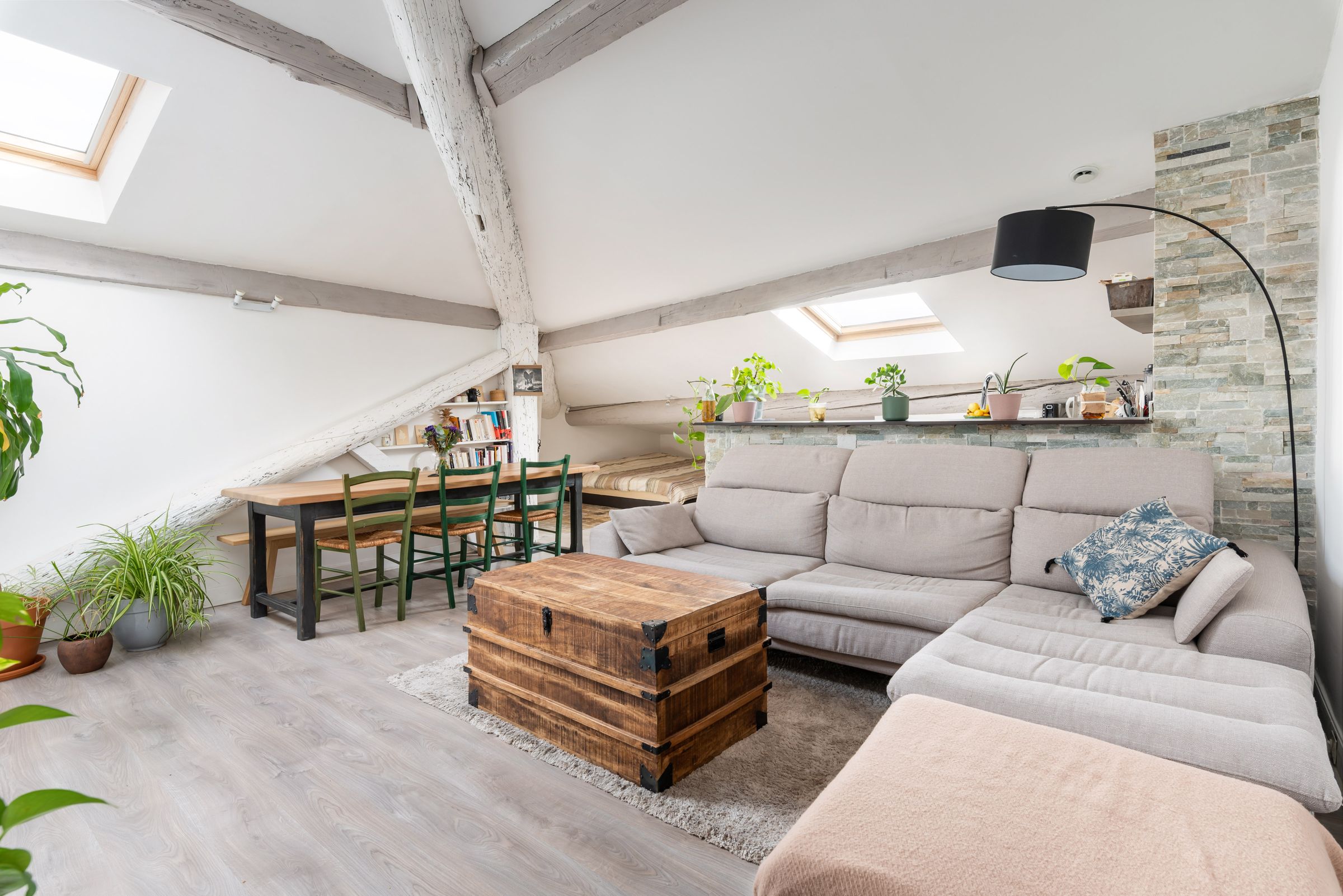 Niché au dernier étage d'une très belle copropriété, ce charmant T2 sous les toits d'une superficie de 36,15m² carrez et 76,14m² utiles sera vous séduire de part son ambiance et son calme. Grande pièce de vie avec cuisine ouverte de 53,64m² au sol, poutres et faitages apparents. Une chambre indépendante avec salle de bain attenante. La sous pente vous permettra également d'optimiser cette surface afin dans créer des zones de rangements.