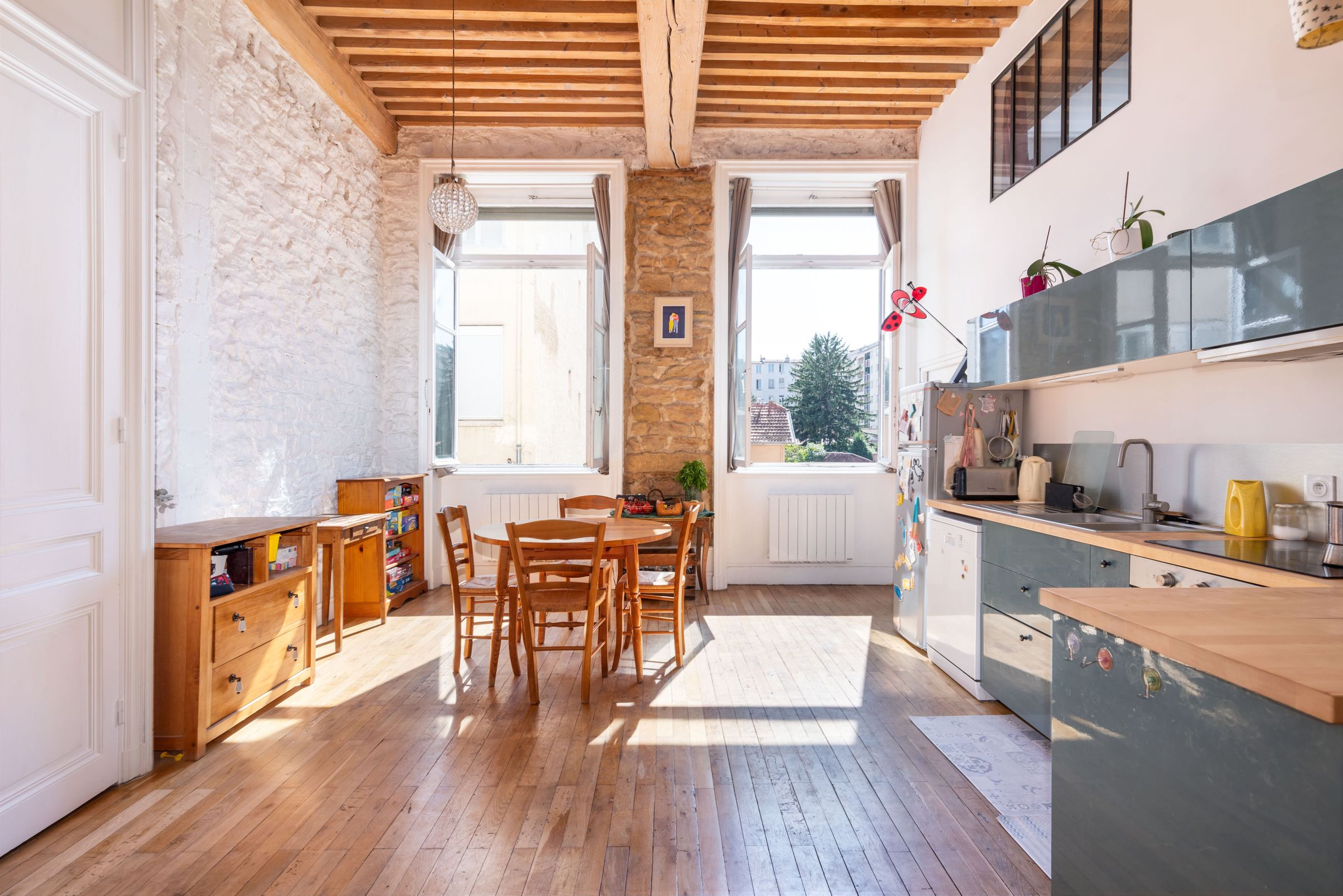 Un grenier ainsi qu'une cave viennent parfaire ce bien rare, idéal pour les amoureux de l'ancien, du quartier de la Croix-Rousse et de sa vie de village si prisée.