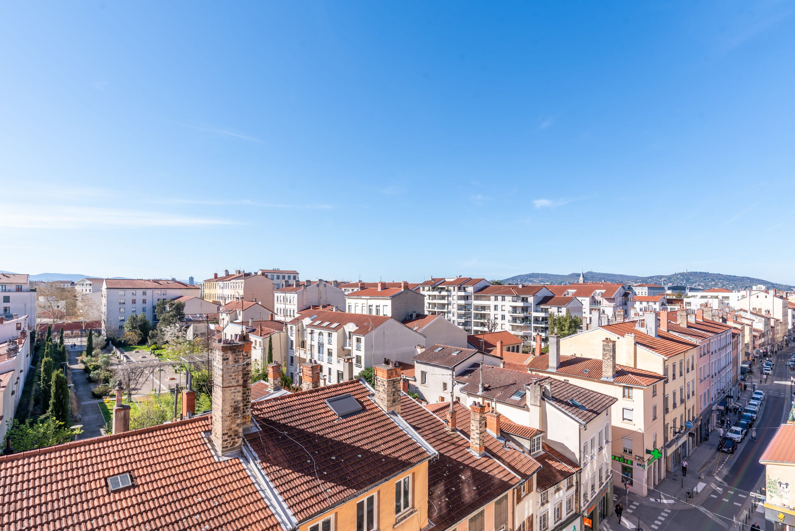 À deux pas de la place de la Croix-Rousse, au 5ème et dernier étage avec ascenseur d'un très bel immeuble croix-roussien, cet appartement développe 66,7 m² Carrez (70 m² utiles).