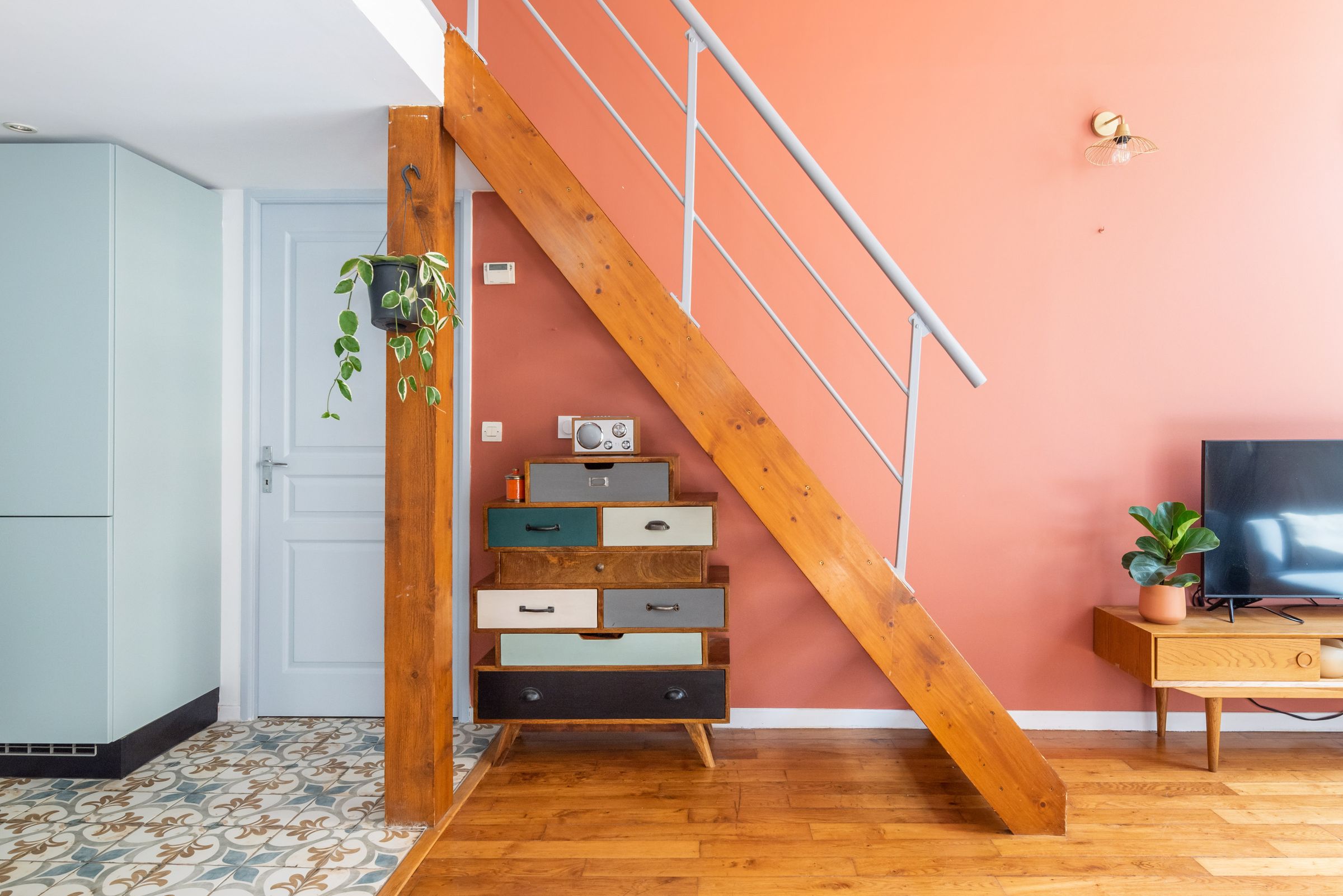 Ayant bénéficié de rénovations soignées, le bien offre un aménagement optimisé et fonctionnel qui ne fait néanmoins pas l'économie du charme et du cachet. Articulant ses surfaces sur deux niveaux grâce à la mise en œuvre de deux mezzanines, il développe une belle pièce de vie parquetée de 36m2, éclairée au SUD par deux grandes fenêtres, avec sa cuisine aménagée et équipée au carrelage ciment, de deux chambres ( de 11 et 12m2 LC dont une avec mezzanine), un grand espace bureau ou coin nuit sur mezzanine confortable (carrez), buanderie, WC, salle de bains.
