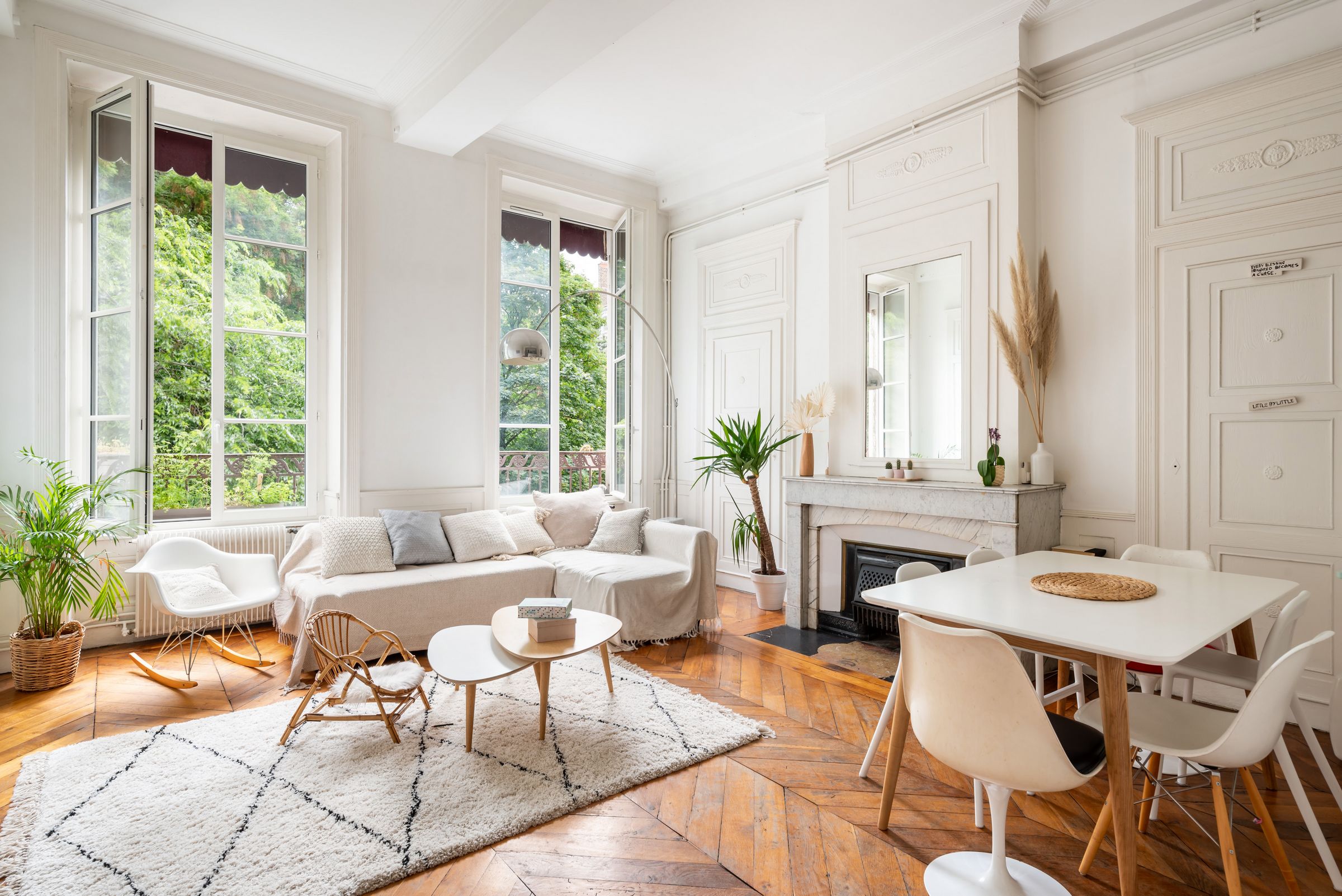 A proximité de l’ensemble des commerces et commodités de la place Sathonay, à quelques minutes de marche des institutions scolaires croix-roussiennes (Chartreux, Saint-Bruno, Philippe de Lassalle, etc.), au 2ème étage avec ascenseur d'une copropriété parfaitement entretenue, ce bel appartement 4 pièces de 119m² Carrez a bénéficié de rénovations particulièrement attentives à la préservation des matériaux d'origine : parquet point de Hongrie, stylobates, cheminée et trumeaux notamment.