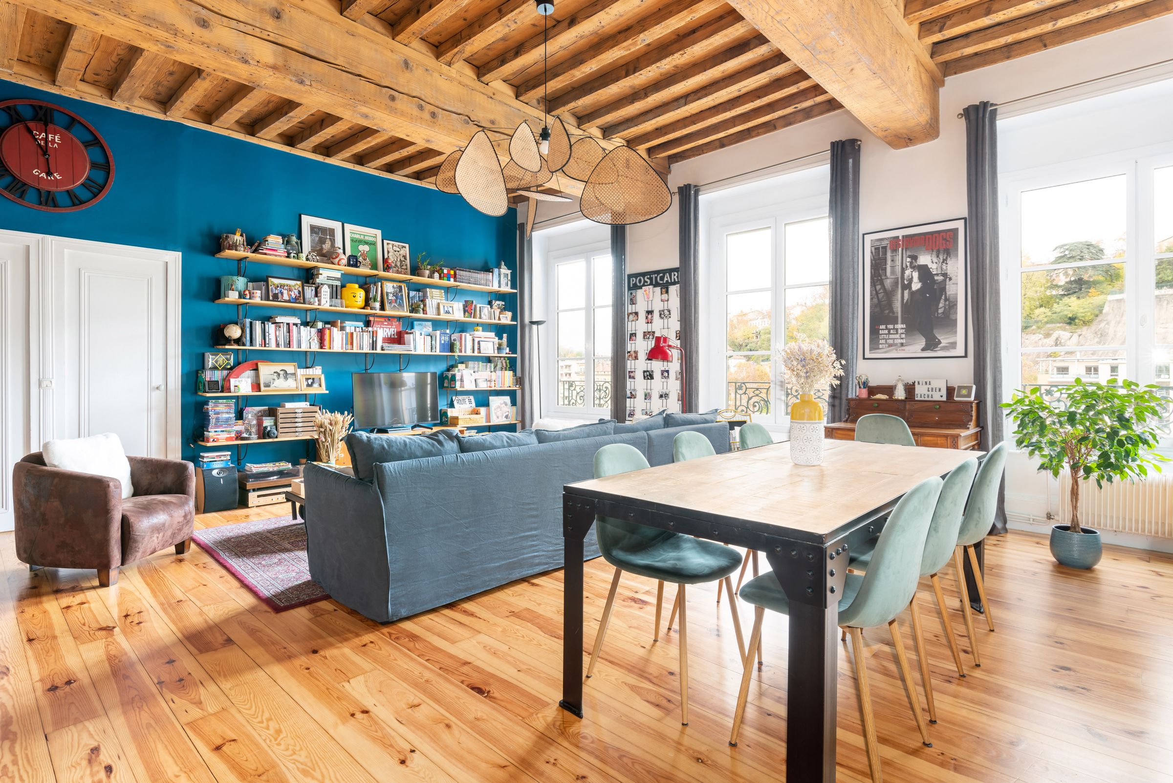 Situé dans le Vieux Lyon Quai Pierre Scize et en face du Quai Saint Vincent, au 5ème étage desservi par ascenseur d’une belle copropriété typique du secteur, cet appartement familial de 4 pièces avec 104m² Carrez a été entièrement rénové en préservant le charme et cachet d'origine.