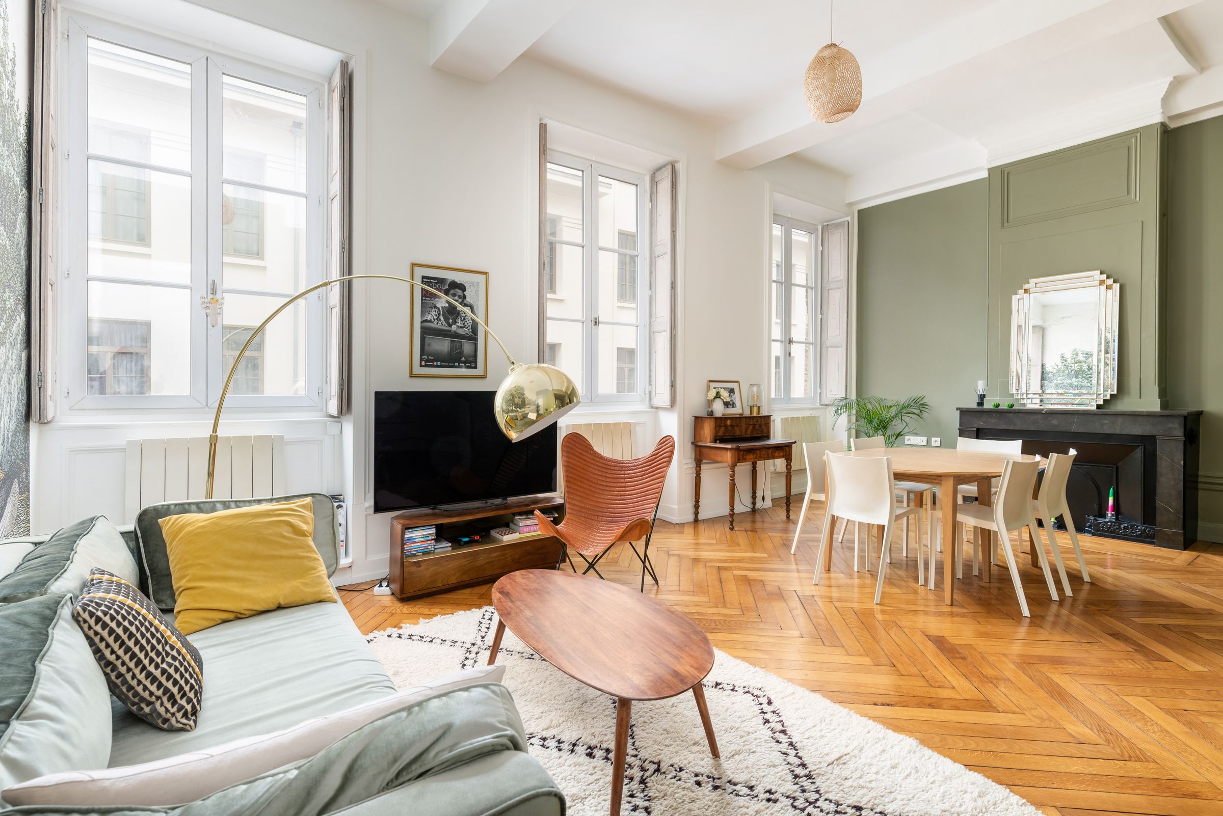En plein cœur du Vieux Lyon et au pied du métro, appartement cossu de 115m² Carrez entièrement rénové et composé de 5 pièces.