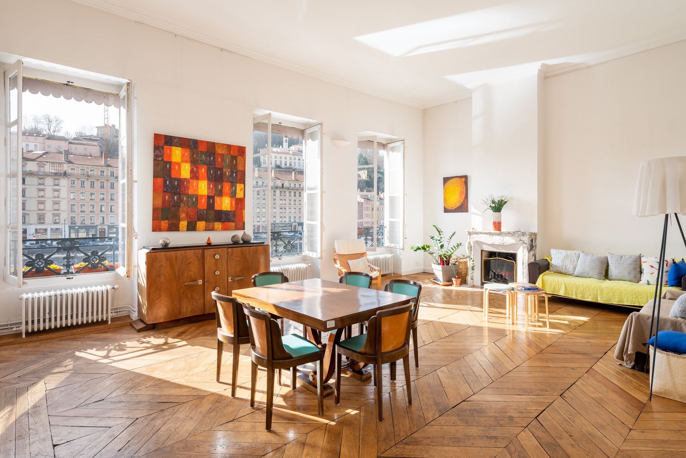 Quai Saint Vincent, emplacement prisé situé au 4ème étage, desservi par ascenseur d’une très belle copropriété de type bourgeois, ce très beau 4 pièces de 152 m², baigné de lumière, exposé plein sud avec sa vue magnifique sur les quais de Saône, bénéficie du cachet de l’ancien : parquet, cheminées, moulures et belle hauteur sous plafond. Il se compose d'un hall d'entrée, un vaste séjour de 30m² avec cheminée en fonction ainsi qu’une vue dégagée sur la Saône, une cuisine indépendante, trois chambres, une salle de bain, une salle d’eau et des toilettes séparés, ainsi que de nombreux rangements. Au sein d’un des quartiers les plus dynamiques et attachants du centre et à proximité immédiate de toutes les commodités (commerces, écoles, marché, bus...), cet appartement coup de cœur saura séduire celles et ceux qui, attachés à un mode de vie urbain, souhaitent néanmoins acquérir un lieu de vie confortable et pratique dans un bien ancien. Quelques travaux à prévoir dans l’appartement. Une cave ainsi complète ce bien.